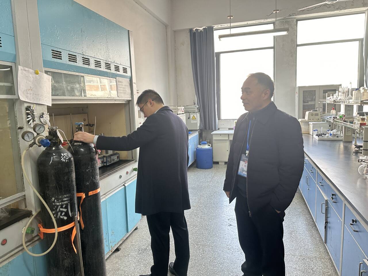 为筑牢寒假期间校园安全防线,切实保障师生生命财产安全,1月14日至15日,实验室管理处联合保卫处共同组织开展寒假前实验室安全检查。本次检查遵循“全覆盖、无死角、重实效”原则,聚焦实验室安全关键领域,对危险化学品储存与使用规范、特种设备日常运维状况、用电及消防设施完好性等核心环节,进行拉网式排查,确保不遗漏任何安全隐患点。